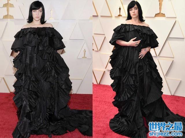 凭借《No Time To Die》一举夺得奥斯卡最佳原创歌曲奖,但这一身Gucci礼服裙,也太拉垮了。