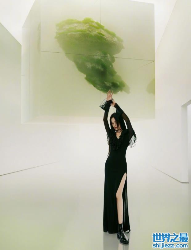 不管看多少次,娜扎的大长腿依旧很是惊艳。开叉的设计将娜扎的大长腿展现地淋漓尽致,紧身的长裙又勾勒了纤细的腰肢和修长的身材,身后白色和绿色纯净而有生机,娜扎就像是春日里的漂亮精灵。