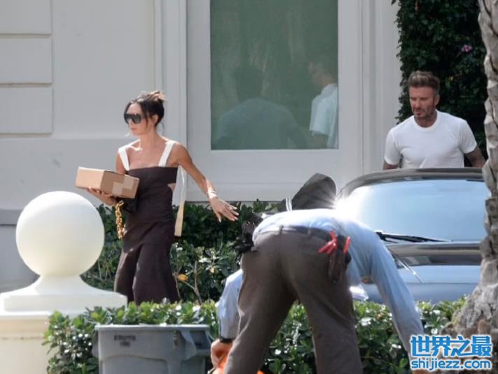 而贝克汉姆和妻子则驾驶着黑色豪车亮相现场。妻子维多利亚穿着吊带裙,白色的带子黑色的裙身,手上抱着一个盒子,戴着墨镜神色匆匆,想必是赶着去办什么事情。而贝克汉姆则紧紧跟在妻子的身后。