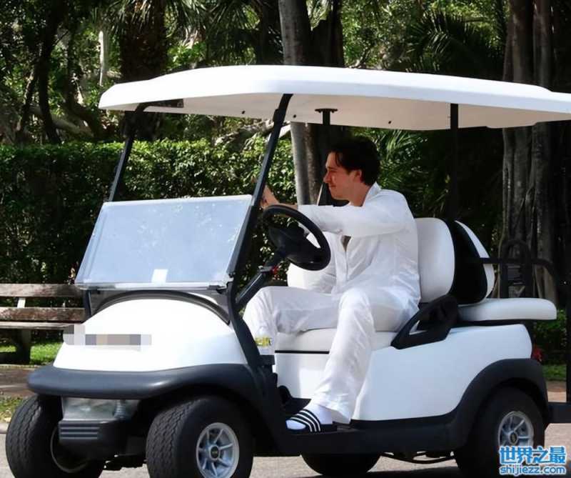 在婚礼现场,布鲁克林穿着一身白色衬衫,开着高尔夫球车现身现场。只见布鲁克林白衣白裤子,开车车穿着拖鞋略显随意,看起来心情不错。