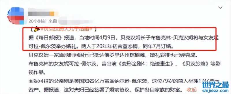 贝克汉姆长子婚礼太豪华!名流云集保安跟随,老婆父亲是亿万富翁 ...