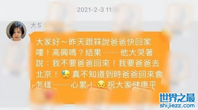 很多人会不解,为什么大S会跟汪小菲离婚,其实大S之前在粉丝群说过,儿子不想见爸爸。
