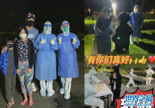 最近还有网友发出了与吴尊一家的合影图,原来吴尊带着孩子们做完核酸后,主动提出跟医护人员合影。
