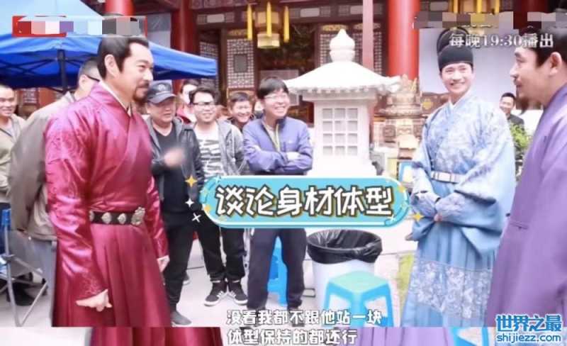 随后二人又来到群演身边,谈起了体型,张丰毅先夸赞群演体型很不错,陈宝国也随声附和,称自己都不好意思站在群演身边。