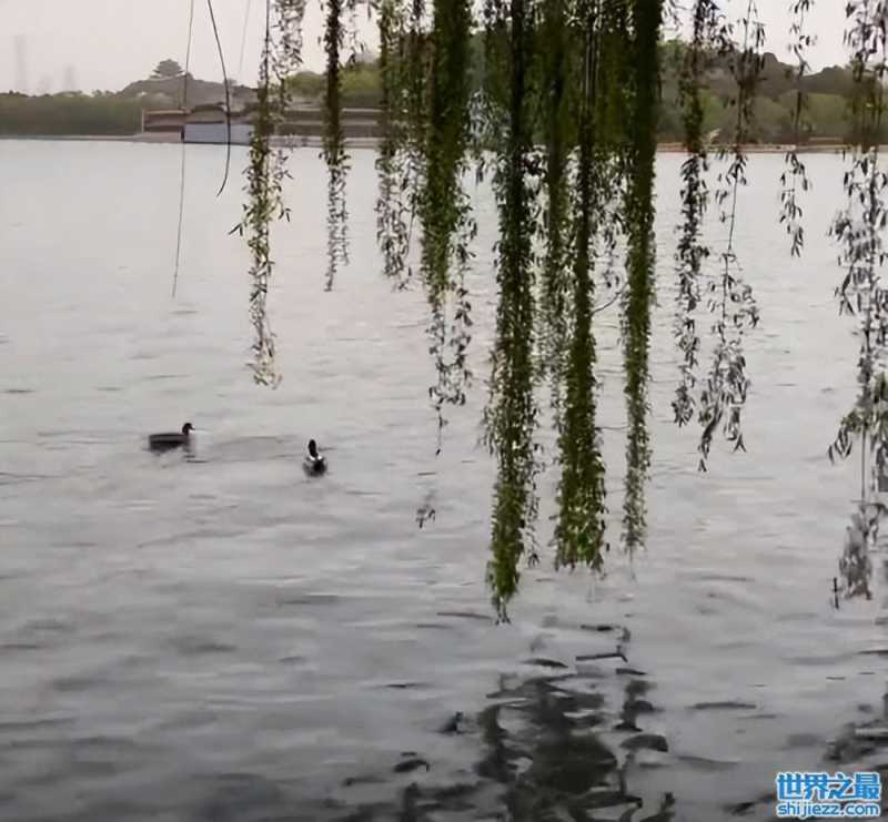 镜头之中的何超莲迎着春风,然后站在柳条之中笑着记录下自己的侧身。而湖里正是一对鸳鸯戏水的画面,站在岸上的除了何超莲还有谁?肯定是男友窦骁啦。