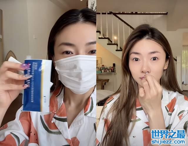 程晓玥则是晒出了自己在家中自测的过程,她拿着检测盒,将棉签戳入自己的鼻子,还说这样的动作已经重复了许多次,已经非常熟练。