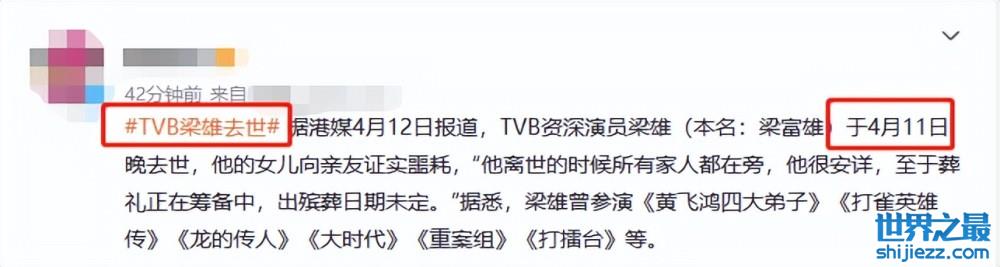 TVB资深演员梁熊去世!家人陪伴身旁走得安详,拍戏百部很少NG ...