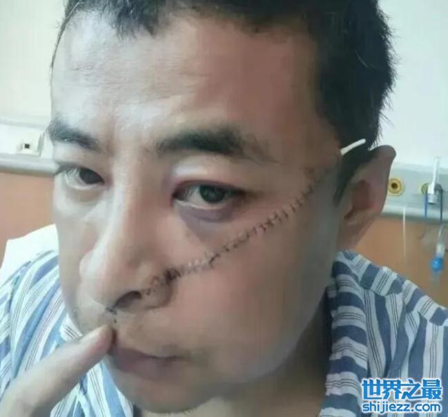 被人打到进医院进行治疗,看来大肠哥这一次真的伤得不轻,从上面的受伤缝合照片来看,应该是一把刀从他半张脸上面给砍了过去。