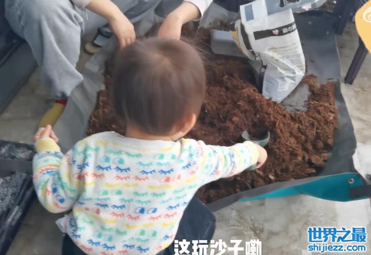 过了一会,苗苗的女儿也是蹦跶着走过来,手里拿着铲子,蹲在地上要给妈妈帮忙铲土。那小手肉嘟嘟的很是可爱,手上力气还挺大,端着一铲子土也不手抖。