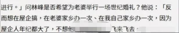 至于一直想要补办的婚礼,林峯保证一定会办,会在自家老家和张馨月老家各办一场,但因为疫情原因还要继续推迟。