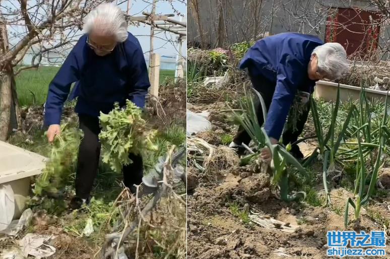 在老奶奶晒出的日常生活中,她也很辛苦。平时会下地摘菜,在视频中她连拔了几下,才将大蒜苗拔了出来。
