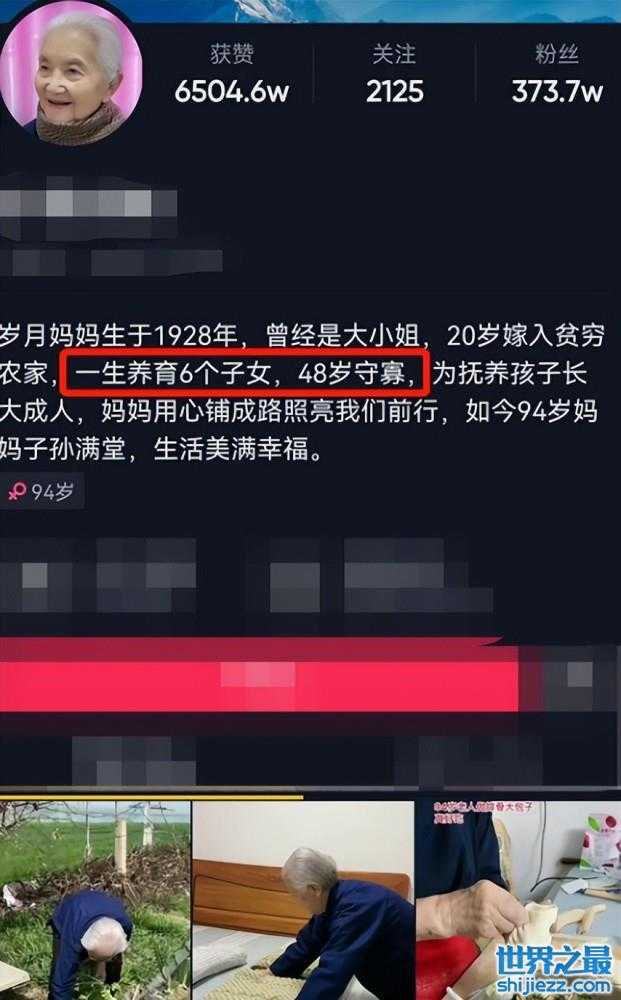 在老奶奶的社交平台主页中,我们可以看到她曾是大小姐,后来嫁到农家,养育了6个子女,48岁便失去了丈夫。短短的几句话,背后却是他人体会不到的艰辛。