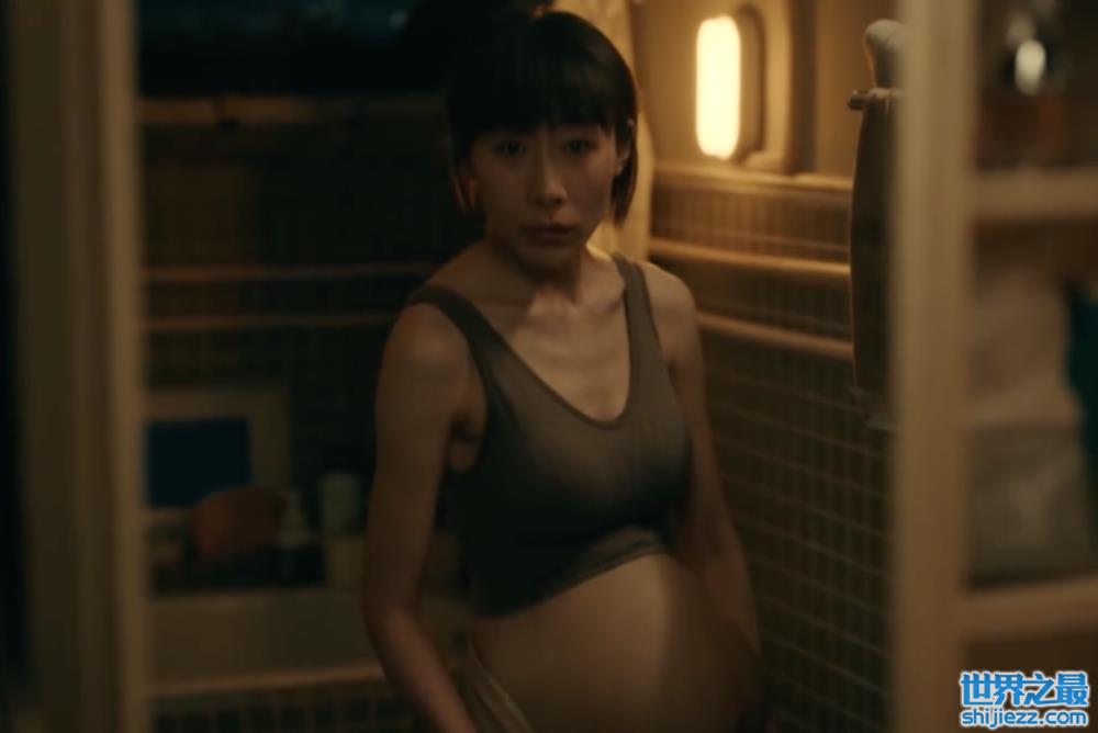看着镜子里的大肚子的自己,女主哭了,这个镜头,就是女主“生育受难”的开始。
