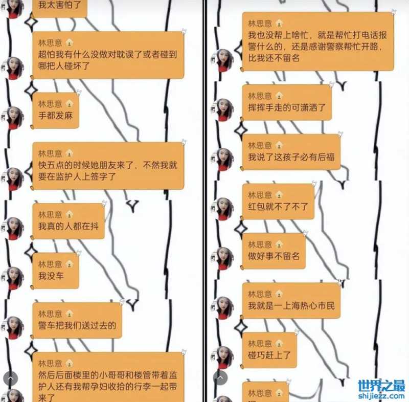 事后林思意表示自己有点后怕,人都在发抖,怕当时照顾不好孕妇,表示自己只是一个普通的热心民众。