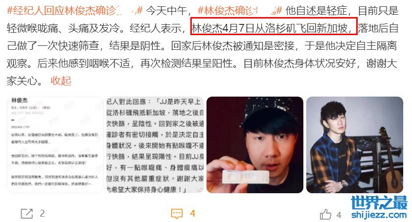 二,林俊杰国外演出没戴口罩确诊,已经痊愈
