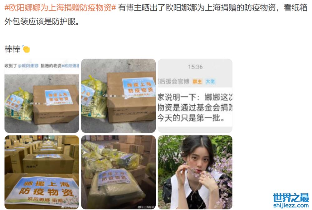 欧阳娜娜在做公益方面也很有责任心,第一时间捐了很多物资。
