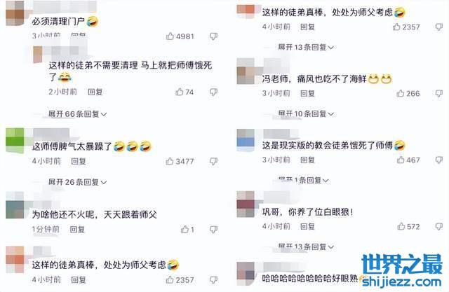 这样的视频下面也引来了网友们评论,说冯巩必须清理门户,这就是现实版的教会徒弟饿死了师父。也有网友说道,这徒弟太贴心了,处处为师父着想,知道师父痛风就把海鲜和酒都自己吃了。