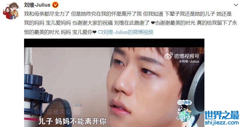 刘维贴出母亲和他生前所录的视频,算是最后告别母亲!