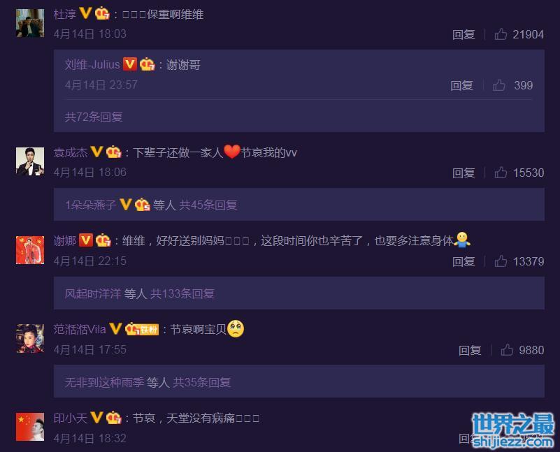 娱乐圈里的明星艺人们也纷纷发文安慰刘维,谢娜和大左,符龙龙和李宗泽,沈梦辰,薛之谦,杨迪等人,太多太多的明星艺人送上安慰的话。
