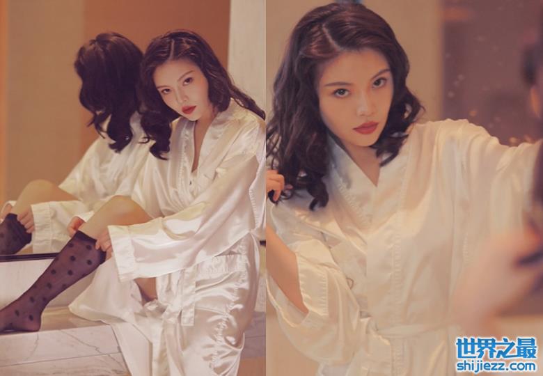 画面中徐冬冬弄起波浪卷发,涂着大红唇化着无可挑剔的妆容,秀出精致的面容。她身穿一件白色绸缎浴衣搭配波点黑丝,衬出成熟女人的知性和风情,让无数人神魂颠倒。下一张图片里她撩拨发丝,单腿抬起搭在床垫上,散发着慵懒迷人的气质。