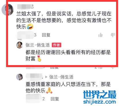 其中,有一位网友说:“说实话,总感觉汪小菲的生活不是他想要的,感觉他没有激情也不快乐”,张兰似乎也承认了这一点,汪小菲现在老婆和另一个男人结婚了,绯闻女友张颖颖也撇清了关系,事业上也不顺,不过张兰的回应是:“都是经历,回头看看所有的经历都是财富”。