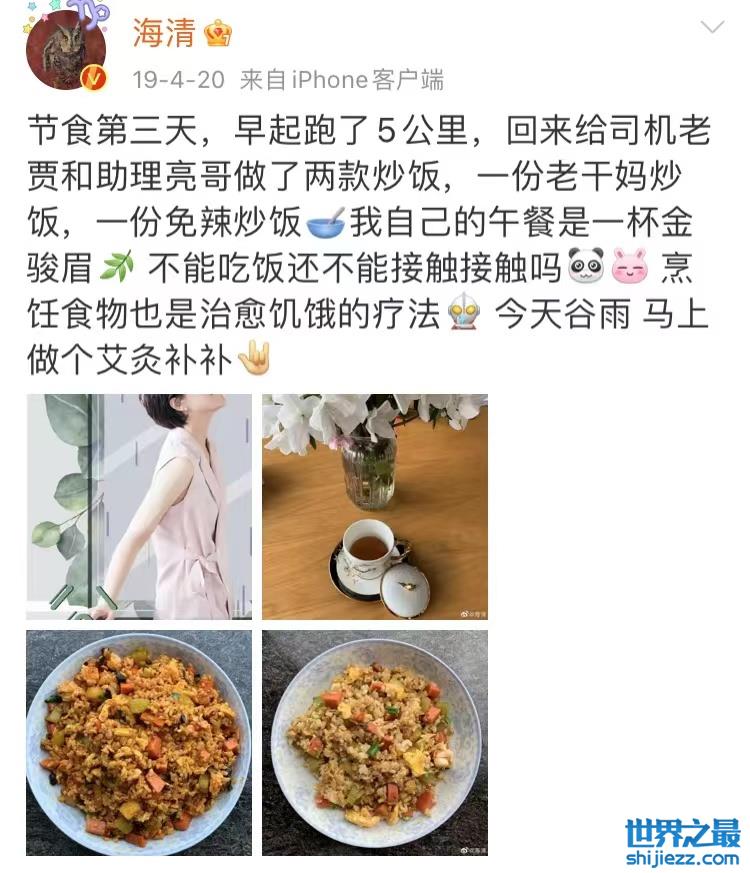 海清的社交平台也是处处可见养生的痕迹,她不仅节食辟谷,还做艾灸。