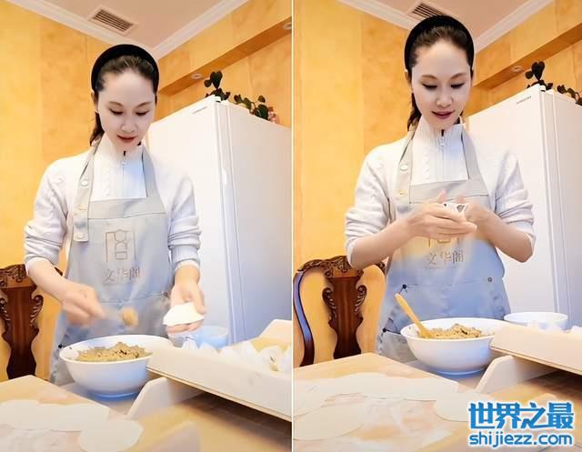 57岁于文华豪宅里包饺子!戴发箍露出高发际线,皮肤白嫩没皱纹 ...