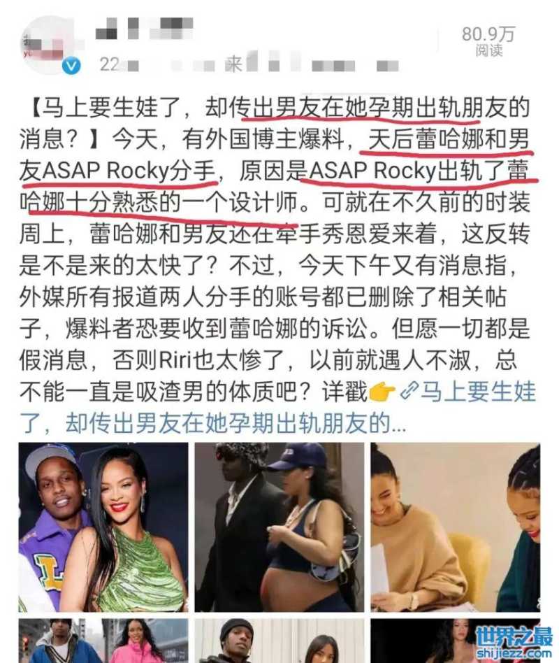 有人爆料称,天后蕾哈娜在怀孕期间,男友出轨了一个设计师,消息一出,震惊全场。