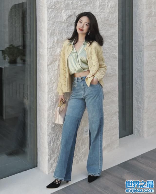 除了裙装,杨采钰还偏爱短上衣搭配牛仔裤。同样是强调身材比例,裤装的搭配就显得干练不少,是很多职场女性都非常值得借鉴的穿搭。