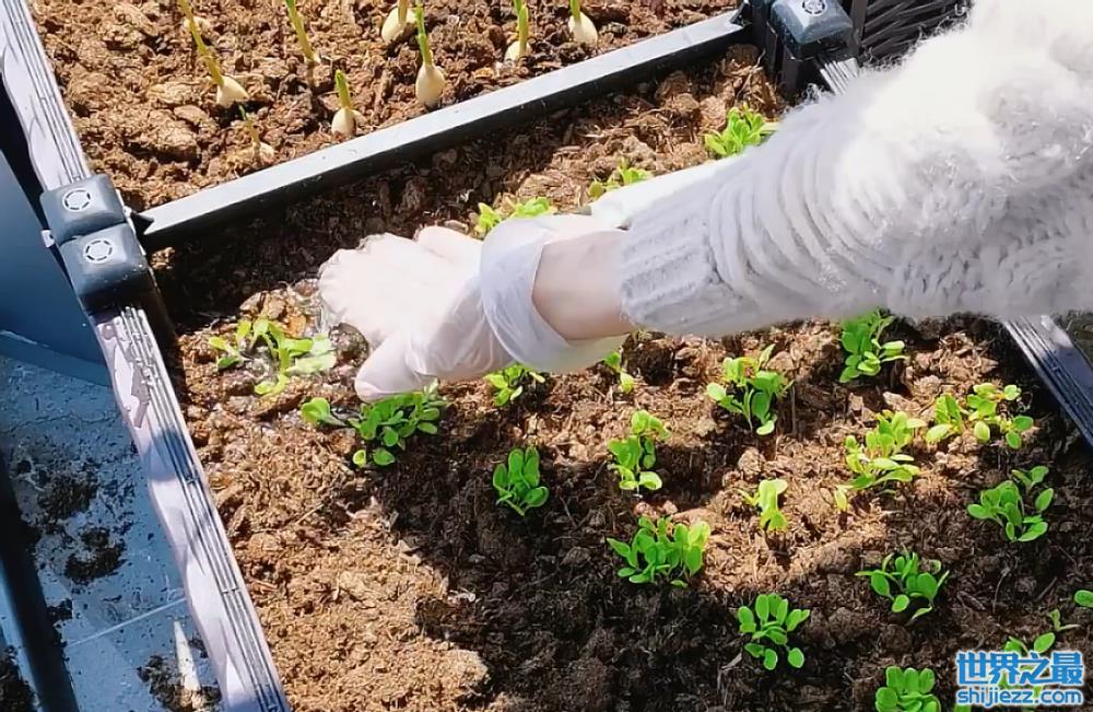 苗苗为了能收获蔬菜可谓是付出了相当多的努力,先是网购各种蔬菜种子、菜盆、软土等等,后来还和妈妈两个人将泥土分网格装好、撒种子、浇水、铲土等等,步骤繁琐吃力,但她很有耐心也善于学习。