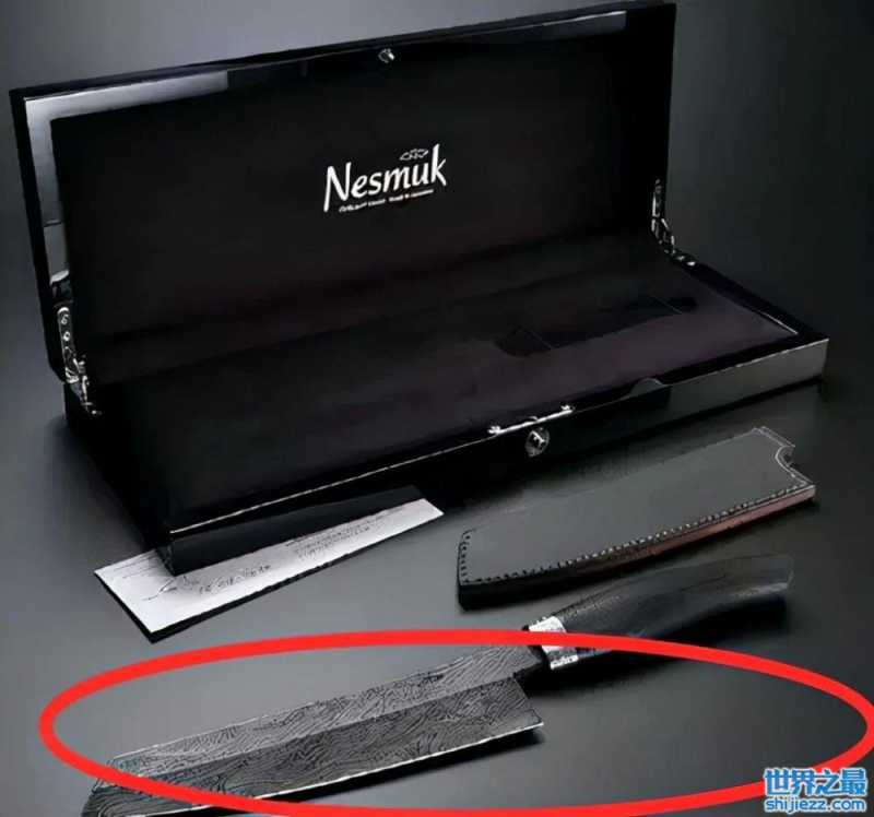 据悉,这把菜刀手柄是用几百年的沼泽木制成,上面还镶嵌着25种珍贵的小宝石, 整个刀都透露出一股奢侈的气息。