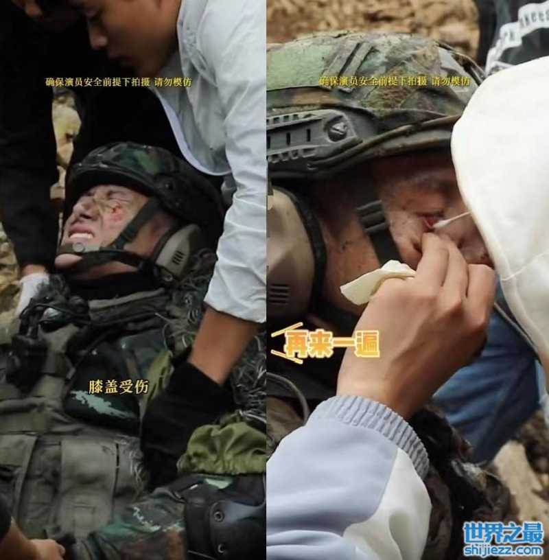 而在被压的过程中郭洺宇膝盖受伤,同时一些泥土也倒入了他的眼睛里,工作人员及时用棉签帮其清理,这场戏的危险程度可见一斑。但即便如此,郭洺宇依旧不用替身,继续重拍。