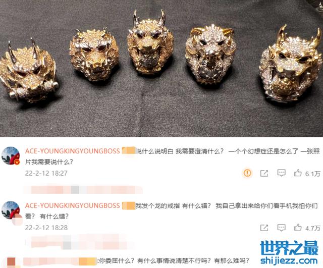 后来黄子韬在某社交平台晒出了自己的戒指照片,戒指的样式正好是五个龙头,被网友猜测他是不是回应恋情事件是“乌龙”,还有许多粉丝依旧希望他做出解释。一向态度很刚的黄子韬直接在评论区作出回应,称“一张照片我需要说什么”,并说不怕大家看他的手机。