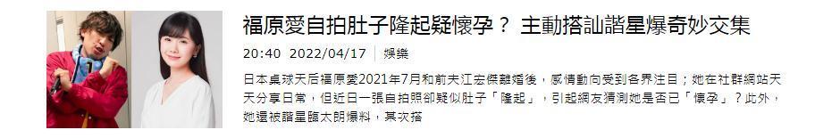 4月16日,福原爱在个人账号上传了一张自己的最新动态照片,也因为这一张照片拍摄的角度问题还有自己穿的卫衣问题,当时的福原爱就被猜测已经怀孕了。
