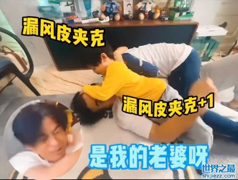 最后地陈龙直接被儿子按在了地上,两个儿子都骑在爸爸地肚子上,真的是两个漏风地皮夹克,把爸爸压得都喘不过气来,样子十分的滑稽。