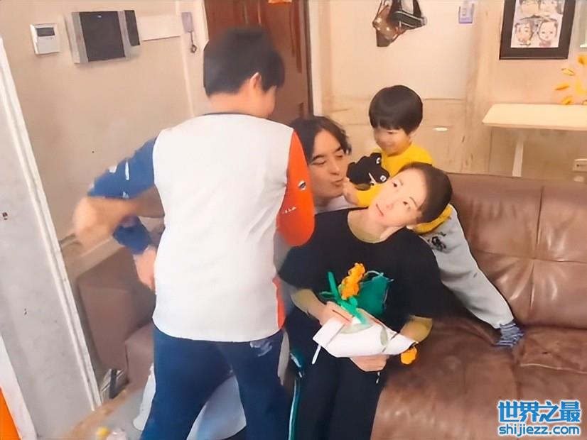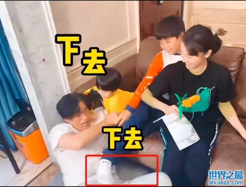 最后两个儿子更是直接上脚,把爸爸踹下了沙发。陈龙还狠狠地抓住沙发,不想让自己掉下去。但是拗不过自己的儿子,还是被踹到了地上,妈妈在一旁笑得很开心。