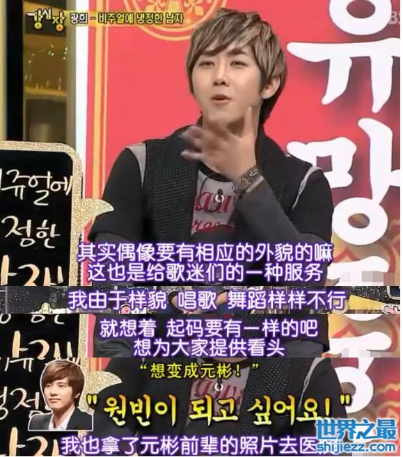 整容风靡的韩国,很多艺人在出道前就已经将自己的脸整好了。男团“帝国之子”成员黄光熙,就在韩综《强心脏》里坦白:“我是整形界的潜力股,出道前大概在床上躺了一年左右。”