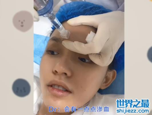 全脸上麻药、上碘伏,然后医生在她脸上,人工手打水光针,一针针扎入皮肤,出来就渗出了小血珠。做完这个项目,林允脸肿了一圈,眼睛都疼得睁不开了。