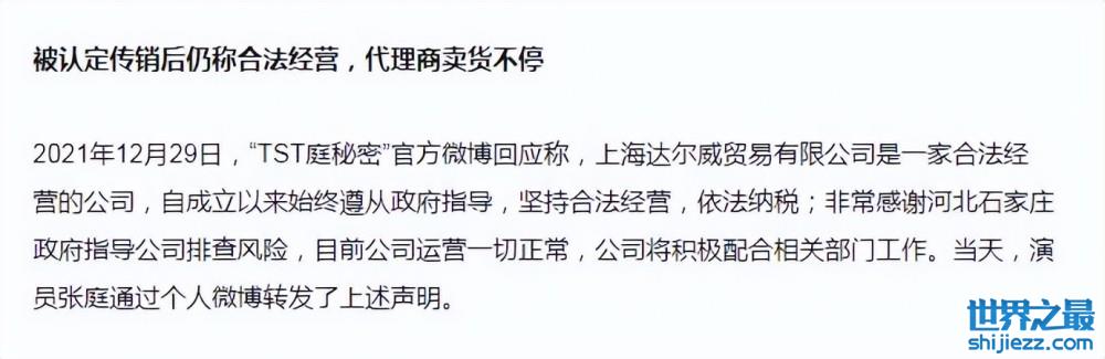 值得一提的就是在此消息公布之前,其实张庭夫妇的TST母公司,就已经被认定传销,罚没2100万元。4月18日官方再一次追加处罚,名下96套房产被查封,价值17亿元!