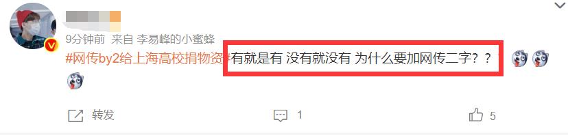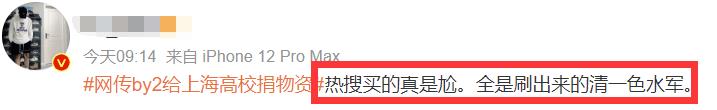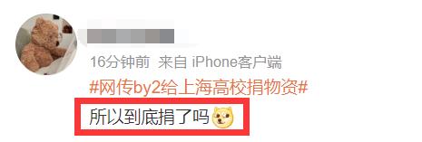 本来这是一件好事,但没想到被曝光传播后,有关“By2给上海高校捐物资”的话题被送上热搜,然而还多了两个字“网传”,这突然间就变了“味道”,也因此让网友对此议论纷纷。