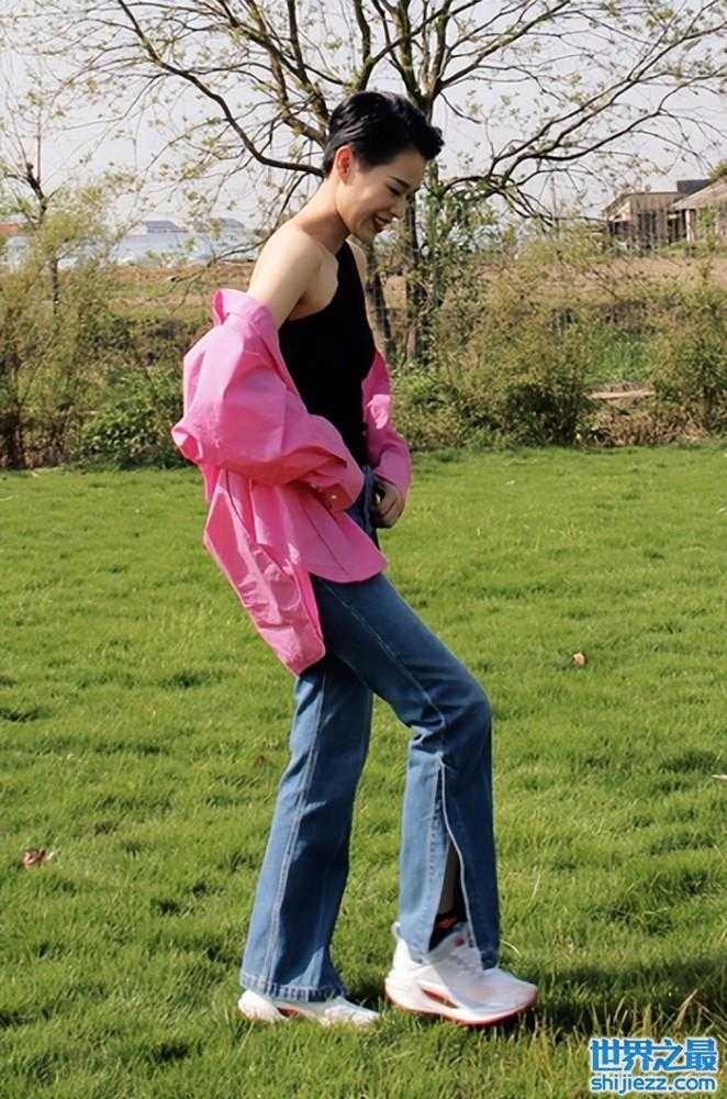 在另一张图片中,胡杏儿直接把衣服脱了一半,露出香肩。看得出来,胡杏儿身材很好,手臂纤细。照片中的她将手放在自己的腰带上,一头短发的造型更增添了一份英气,和以往的胡杏儿有了些区别。低着头微笑,又显得她平易近人。
