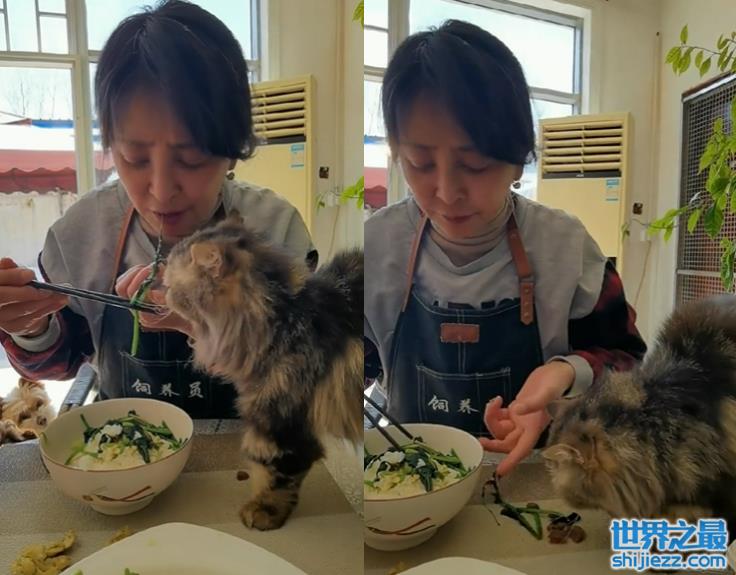 李勤勤和猫同吃菜叶不嫌脏!头发凌乱打扮朴素,桌上残渣太抢眼 ...