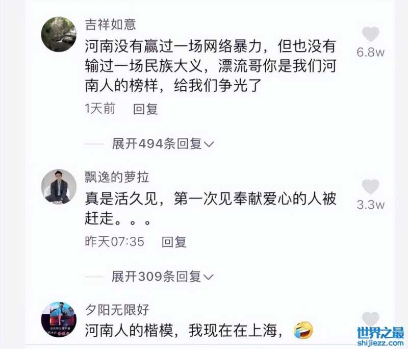 这一条评论的点赞人数高达8万多,目前还在持续的上涨之中。值得一提的就是河南漂流哥本人也点赞了这一位网友的评论。