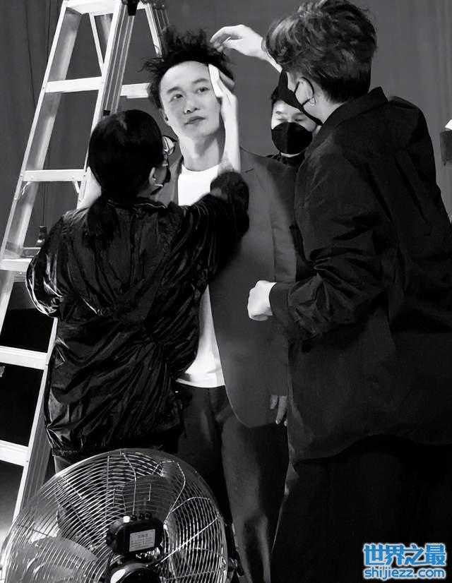 陈奕迅还晒出另一张幕后的工作照片,照片中他的头发被全部吹起,能发现他的发际线很高,露出了光洁的额头。他被三四个工作人员围在中心,有人为他补妆,有人帮他整理衣服,有人为他梳理头发,排场十足,47岁的陈奕迅看起来精神焕发,正值当年。