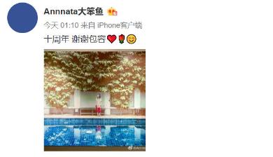 刘若英认为,婚姻中最重要的,是享受爱情的同时,也能有独立的自我。她的丈夫也接受她的生活方式,在结婚十周年时,钟小江发文庆祝。