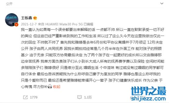 然而,这一家四口的幸福生活还没过上几年,王栎鑫便宣布他离婚了。