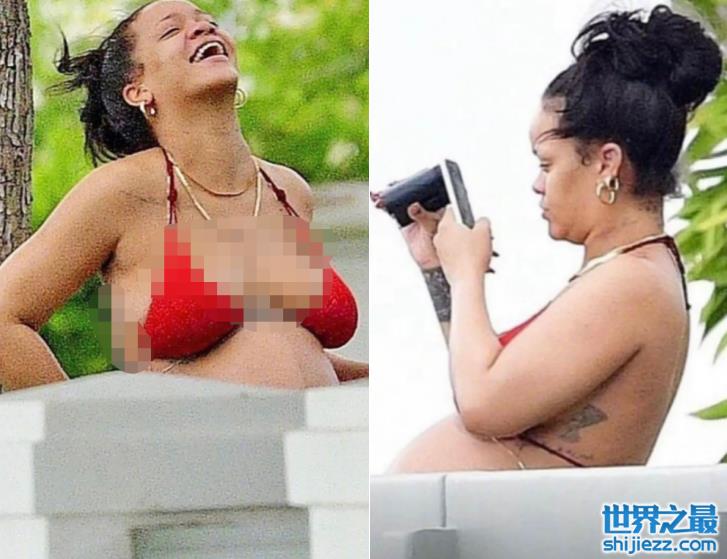 巨星蕾哈娜路边啃椰子!仅穿内衣孕肚巨大,脸部浮肿下巴赘肉抢眼 ...
