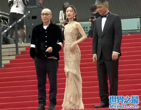 干瘦的周冬雨身材单薄,她还特别偏爱穿紧身裙。她本来骨架就小,在红毯上不够有气势,再穿上不占面积的紧身裙,只剩排骨身材,远景镜头下就像细长的一根火柴。