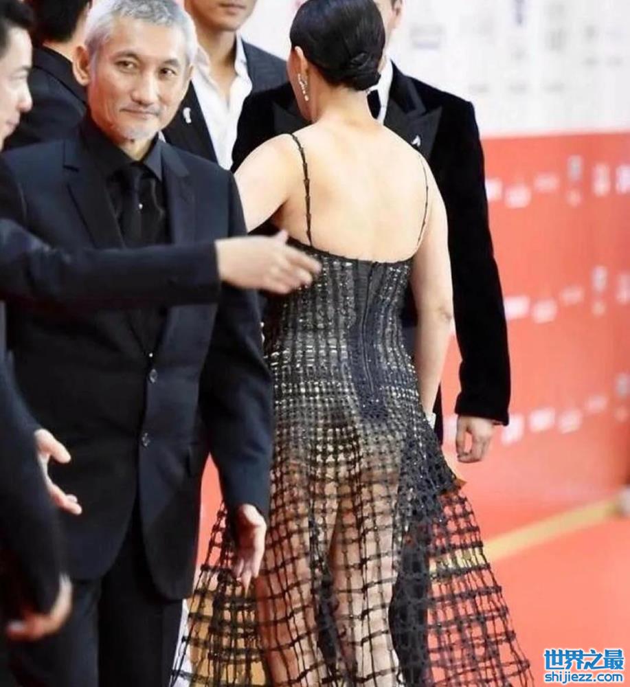 刘嘉玲似乎特别喜欢这种“非主流”礼服:露胳膊露背,还用透视面料展现若隐若现的粗腿。可惜没有傲人身材打底,这样的礼服每次穿出来都是灾难。