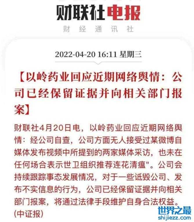4月20日,也就是在王思聪账号被禁言之后,以岭药业最新动态,发1000字长文回应了关于外界对企业的各种质疑,尤其是解释了5大热点问题,